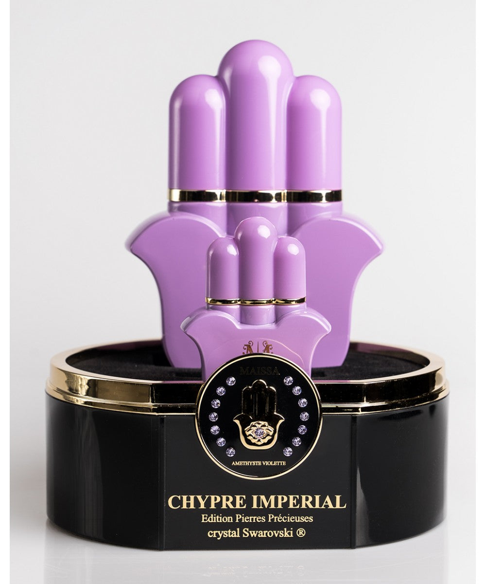 – A 10ml Chypre Impérial perfume. – 15 Swarovski ® purple Amethysts.